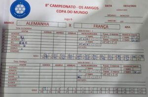 Alemanha vs França 24 vs 1 ResultadosClubeGolsResultadoAlemanha24VitFrança1Der Alemanha 01Robson10Thiago R. 17Anisio 18Odirlei 22Victor P. 53Magrão95Bel99Vitão (Victor Silva) França Kleber1Raphael Hortega14Rafael Faria19Gaúcho23Richard23Leo S.77Sonata7Bahia Rever Detalhes Data Tempo Liga Temporada Rodada dezembro 19, 2023 8:30 pm Liga Amigos 1980 2023 Rodada 9 Campo Quadra Veleiros