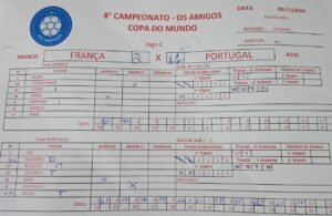 (BRANCO) França vs Portugal (AZUL) 2 vs 11 ResultadosClubeGolsResultadoFrança2DerPortugal11Vit França JoãoKaiqueRaphael Alan 14Rafael Faria 99Vitão (Victor Silva) 100Thiaguinho Portugal Maisena Peixoto Dudu 20Renatinho22Victor P. 31Leo Bertolaci 44Dani Rever Detalhes Data Tempo Liga Temporada Rodada Mesário novembro 5, 2024 9:30 pm Liga Amigos 1980 2024-07 Rodada 1 BEL Campo Quadra Veleiros